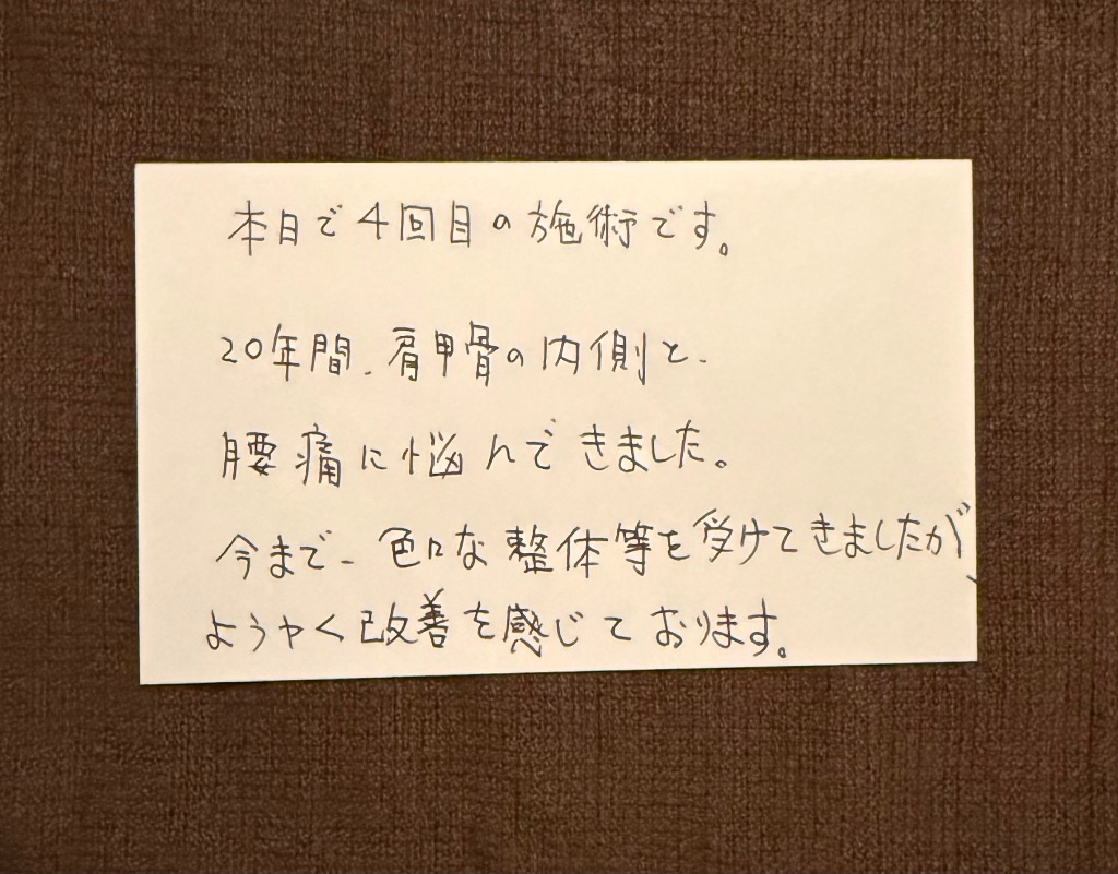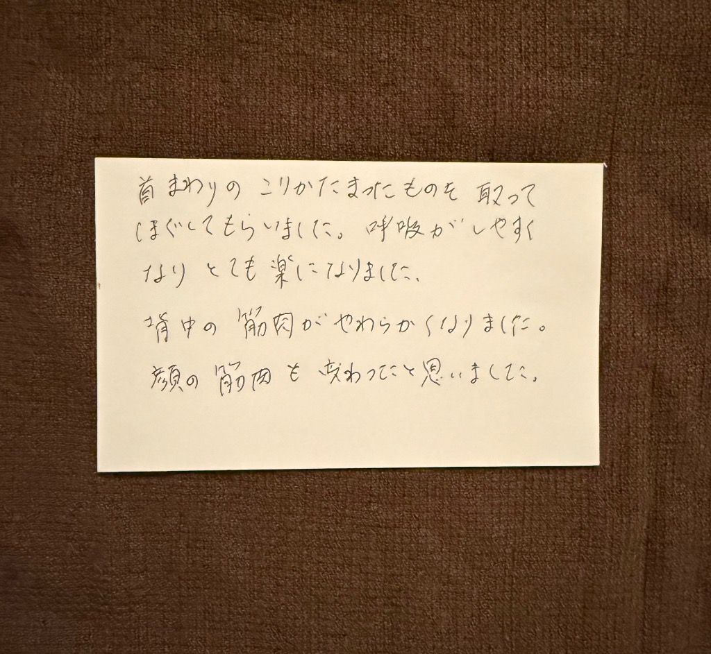 背中が硬くて、特に肩甲骨の間が苦しかったです。